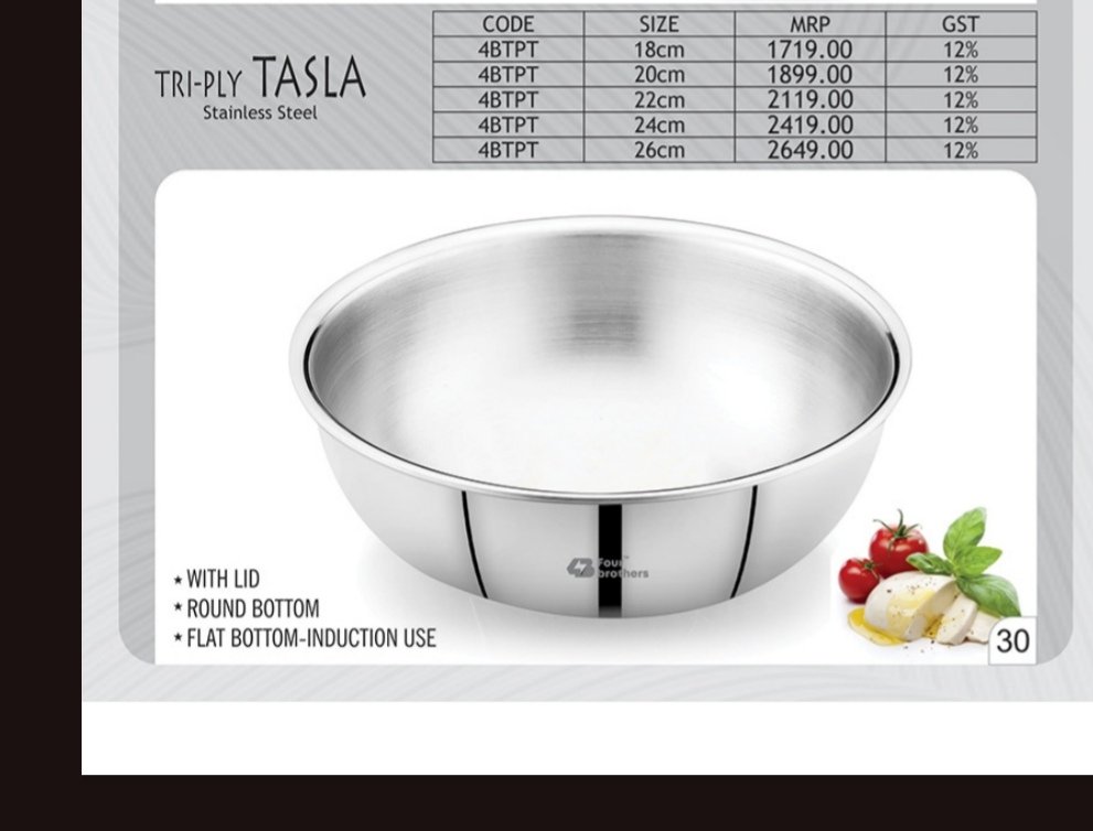 This Tri-Ply Stainless Steel Tasla is a premium cookware choice for modern kitchens. Designed with three layers (stainless steel, aluminium, and steel), it ensures fast, even heating and long-lasting durability. Ideal for deep frying, mixing, or cooking, this tasla is compatible with both gas and induction cooktops.